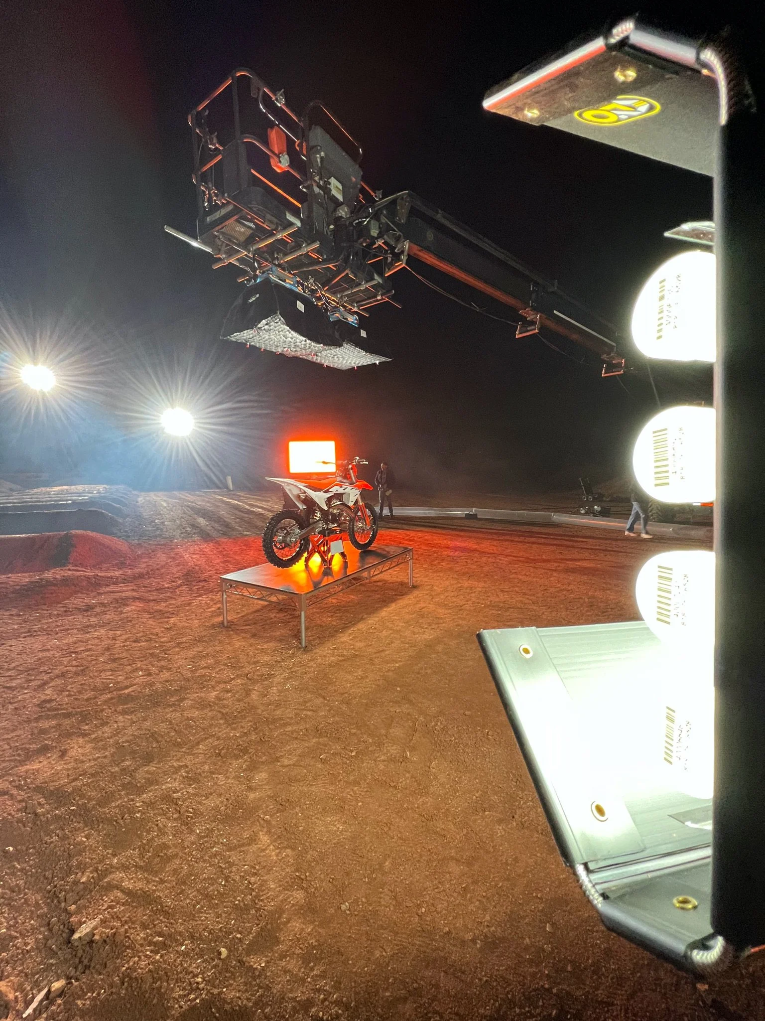In the studio, we captured dynamic teaser shots focused on bike details – brought to life through precise editing. Using lighting, an LED wall, and a jib on a dolly, we created movement and depth without ever leaving the set.